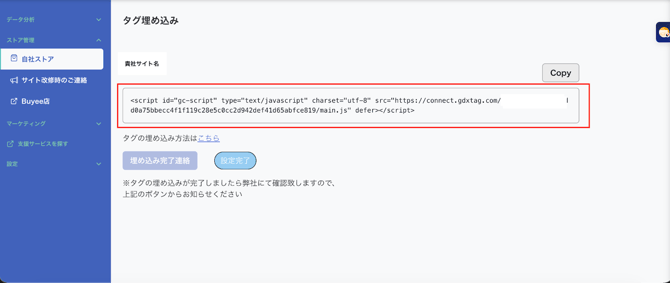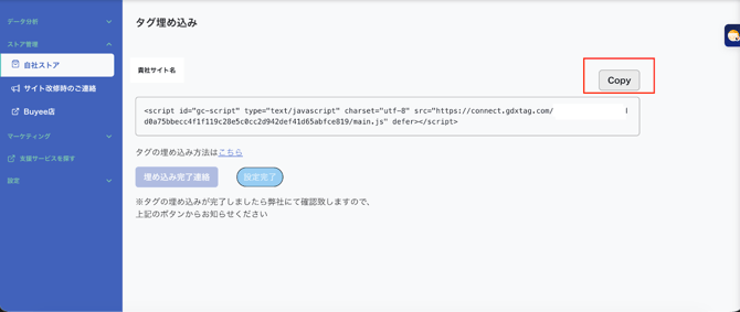 ②-3.画面右上の「Copy」ボタンをクリックし、タグをコピーしてください。