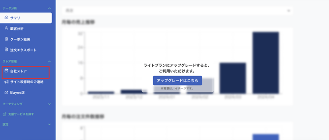 ②-1.ログイン後、左メニュー「ストア管理」>「自社ストア」をクリックします。